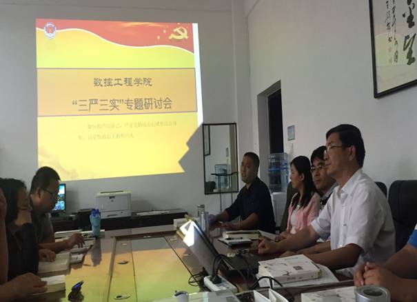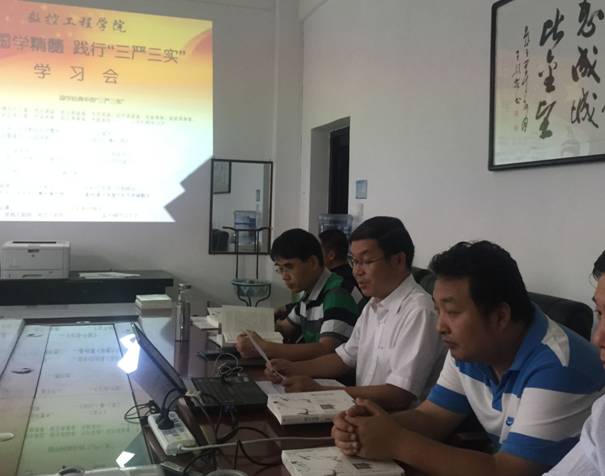 9月23日下午,数控工程学院党总支在行知楼E508室举行“汲取国学精髓、践行三严三实”专题教育活动研讨会。会上,党总支书记南欢向数控学院全体教师党员赠送了中国当代书画大师、著名国学家、诗人范曾先生的《国学开讲》。