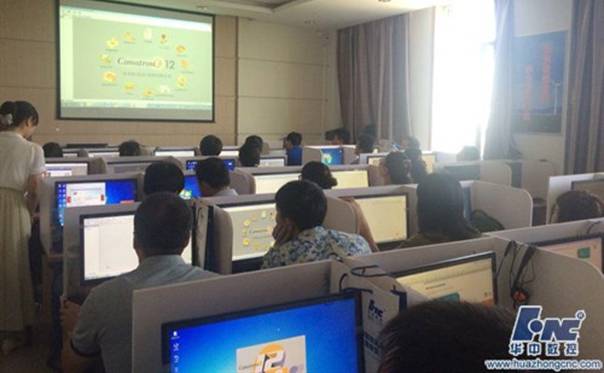 培训班邀请了思美创公司的胡志林老师和武汉华中数控的刘尊洪老师为学员授课,围绕多轴机床基础知识、多轴加工工艺、多轴操作及参数调整,多轴加工编程及实训等进行讲解和交流。培训主要分为两个阶段:第一阶段为CAD/CAM软件CimatronE的学习。内容包括Cimatron概况、草图设计、三轴数控编程、四轴加工、五轴联动铣削加工等;第二阶段为机床实操加工训练。学员们在数控实训车间分组操作,进行叶轮叶片、大力神杯等高难度零件的加工。