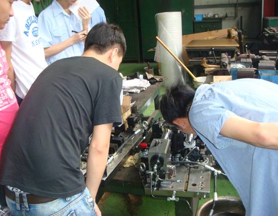 在渭河工模具有限公司,同学们主要在设备、模具、丝锥、谐波等4个分厂进行参观学习。了解了工厂的组织架构、主要产品。学习了数控线切割机床的生产加工、装配调试;精密模具制造流程;丝锥刀具生产过程和军用谐波减速器生产装配。同时对各分厂的生产工艺、主要生产设备及生产组织管理有了进一步的了解。