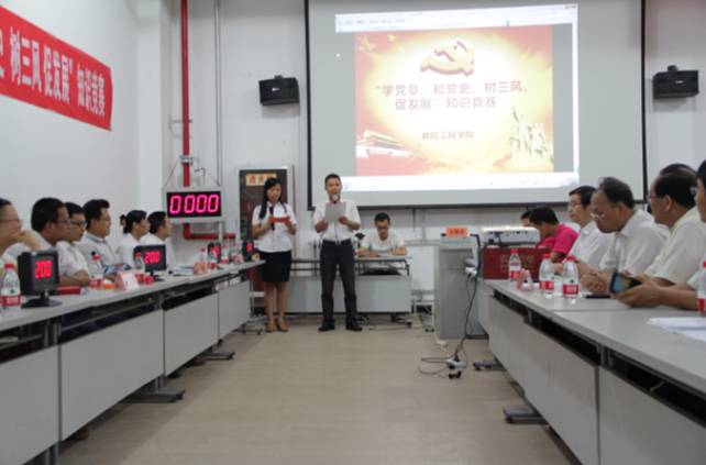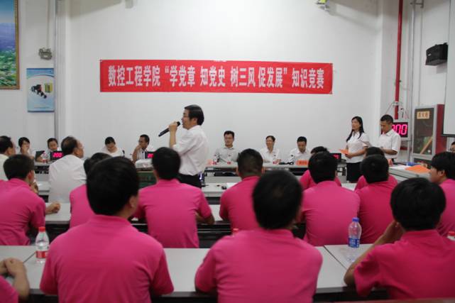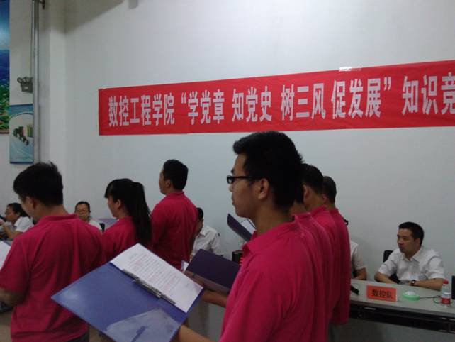 今年是中国共产党建党94周年和中国人民抗日战争暨世界反法西斯战争胜利70周年,为深入学习中国共产党的历史和建党94周年所取得的光辉成就,弘扬爱国主义精神,实现中华民族的伟大复兴,增强广大师生的责任感和使命感, 7月9日下午,数控工程学院党总支在行知楼E一层FANUC中心举办了“学党章、知党史、树三风、促发展”知识竞赛,该院全体教师和学生党员、入党积极分子100余人参加。