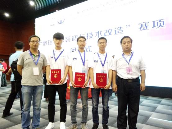 5月11日,2017年全国职业院校技能大赛高职组“数控机床装调与技术改造”赛项比赛在天津机电职业技术学院圆满结束,来自全国27个省市的48支代表队144名选手参加了比赛。经过2天的激烈角逐,由数控工程学院教师祝战科、梁盈富指导的数维1401班刘琦、数维1501班王伟锋、朱锋辉等3名同学组成的陕西一队荣获团体三等奖。
