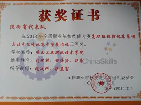 5月5日至9日,2018年全国职业院校技能大赛“数控机床装调与技术改造”赛项在天津中德应用技术大学举行。来自全国50个参赛队的150名参赛选手参加了比赛。我院数控工程学院祝战科、梁盈富老师指导刘瑞祥、田浩浩、杨豪三位同学组成的团队荣获团体三等奖。