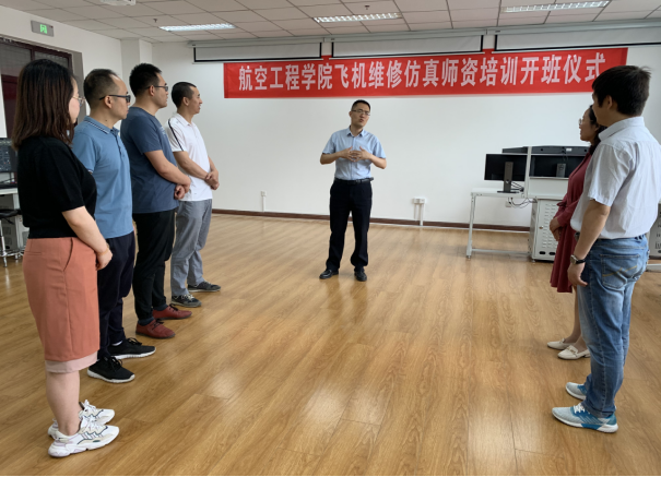 5月27日上午,航空工程学院飞机维修仿真师资培训在精艺楼7011教室举行开班仪式。航空学院院长李晓鹏、中国民航大学教师秦庆霞老师、钱文高老师、中电普信公司两位企业代表和飞机机电设备维修全体教研室教师出席典礼。