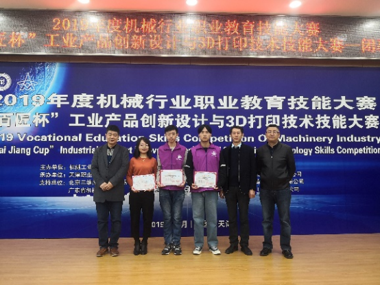 11月23日至25日,由机械工业教育发展中心、全国机械职业教育教学指导委员会主办,天津职业大学、国家増材制造创新中心和西安増材制造国家研究院承办的2019年度机械行业职业教育技能大赛——“百匠杯”工业产品创新设计与3D打印技术技能大赛闭幕式在天津职业大学举行。我校航空工程学院学生詹子徽、陆启航在比赛中发挥出色,荣获二等奖。航空工程学院教师王姣姣受邀担任本次比赛裁判员。