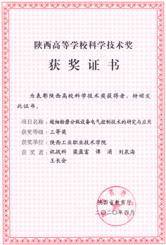 图5 陕西省高校科技进步奖、学校给陕西省非金属矿研究设计院研制的设备