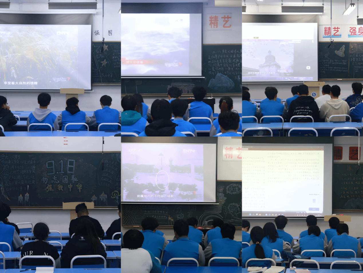 各班班干部首先宣读了“九一八事变”的历史背景,详细介绍了事件的起因、经过及其深远影响。通过真实的历史叙述,同学们进一步认识到日本帝国主义侵华战争的残酷性与中国人民抗战的英勇伟大。随后,全体学生共同观看了历史教育视频《<军事纪实>“九一八”真相》,视频通过珍贵的历史影像和专家讲解,生动再现了那段屈辱与抗争并存的历史。同学们凝神观看,深受触动,纷纷表示要牢记国耻、珍视和平、奋发图强。班会最后,各班班长对本次活动进行总结,强调历史是最好的教科书,也是最好的清醒剂,号召同学们树立正确的历史观,坚决抵制历史虚无主义,将爱国之情转化为报国之行,努力学好专业知识,为中华民族伟大复兴贡献青春力量。