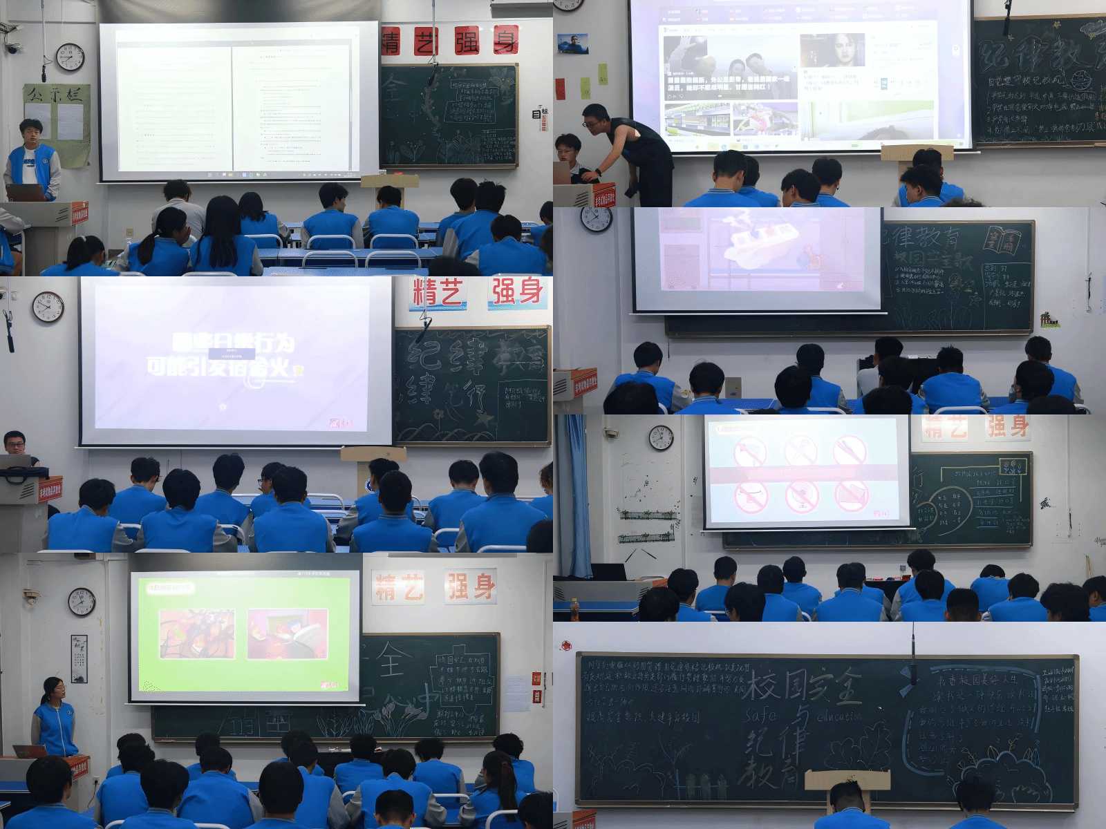 班会围绕“校园安全与纪律教育”这一主题,从出行安全、网络安全、宿舍安全、校规校纪等多个方面展开系统讲解与深入讨论。各班班干部首先宣读了《学生违纪处理规定》及相关安全知识,重点强调了校园内禁止吸烟、禁止携带管制刀具、严禁使用违规电器等纪律红线,并结合真实案例提醒同学们警惕电信诈骗、注意交通安全、防范宿舍火灾等常见风险。随后,全体学生共同观看了安全教育视频,通过生动形象的影像资料进一步加深了对安全知识的理解。班会最后,各班组织开展了教室与宿舍安全隐患排查,确保同学们的学习生活环境安全无忧。