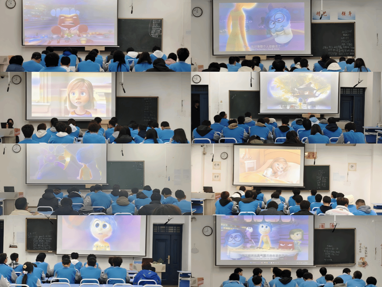 为丰富学生课余文化生活,普及心理健康知识,引导学生科学认识并管理情绪,11月27日晚,航空学院于大一大二各班晚自习教室成功举办了以“光影逐梦”为主题的心理健康教育观影活动。本次活动组织全体大一、大二同学共同观看了皮克斯经典动画电影《头脑特工队》,在光影艺术中开启了一场探索内心世界的奇妙旅程。