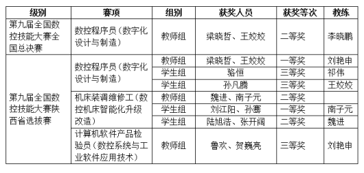 近日,由人力资源社会保障部、教育部、科技部、全国总工会、机械工业联合会等五部委联合共同举办的第九届全国数控技能大赛下发了获奖证书,我校航空工程学院教师梁晓哲、王姣姣获全国总决赛团体二等奖1项。航空工程学院师生在陕西省赛区中获一等奖2项,二等奖2项,三等奖2项,我校获得全国优秀组织奖、陕西省突出贡献单位奖。