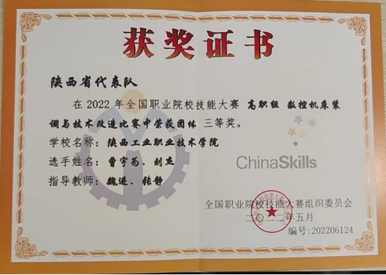 我校获2022年全国职业院校技能大赛“数控机床装调与技术改造”赛项三等奖