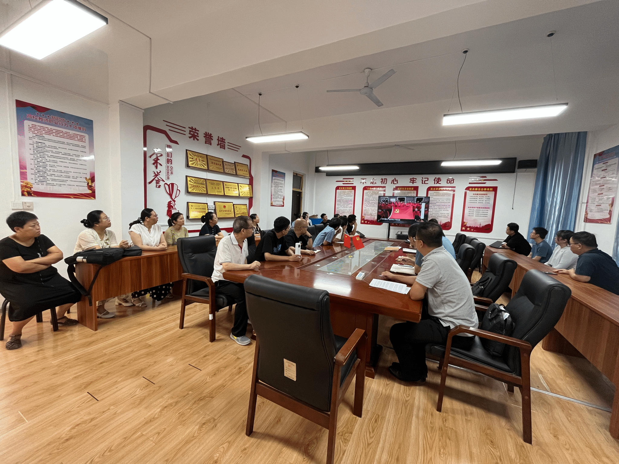会议第三项,为深化以案示警、以案明纪、以案促改效果,会议组织全体党员集中观看了《反腐为了人民》、《零容忍》、《永远吹冲锋号》等警示教育专题片中的精选片段。片中触目惊心的违纪违法案例,深刻揭示了腐败行为对党和国家事业造成的严重危害,剖析了涉案人员理想信念坍塌、权力观扭曲、最终滑向深渊的思想根源和蜕变轨迹。观看后,全体党员深受震撼和教育,大家纷纷表示,要深刻汲取反面典型的惨痛教训,时刻保持清醒头脑,不断增强政治定力、纪律定力、道德定力、抵腐定力,永葆清正廉洁的政治本色。