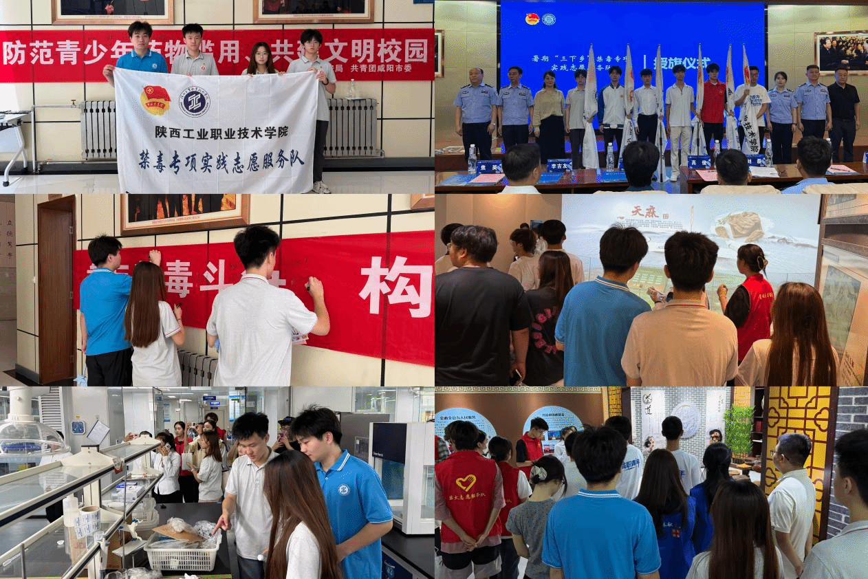 2025年6月26日国际禁毒日当天,咸阳市2025年在咸高校大学生暑期“三下乡”禁毒专项实践活动出征仪式暨“禁毒青力量”高校宣教活动启动仪式于陕西国际商贸学院举行。本次活动由共青团咸阳市委、咸阳市公安局等多家单位联合主办,我校航空工程学院教师团干部李若辰与学院四名暑期“三下乡”禁毒专项实践志愿者参与仪式。