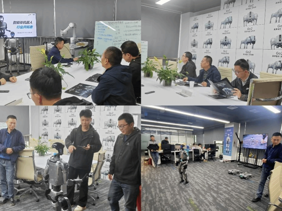 座谈会上,天捷创科公司总经理孙立宏详细介绍了公司的生产研发情况及在具身智能、AGI等前沿科技领域的布局。随着机器人行业的高速发展,对高技术技能人才和复合型管理人才的需求持续增长,希望与高校在学科建设和人才培养等方面深入合作,共同培养符合行业需求的高技术技能人才。会后,调研组与在公司就业的机器人专业毕业生刘祥科、王天仡等学生进行了交流,并参观了智能机器人、四足机械狗、协作机器人集成系统等二次开发功能演示。
