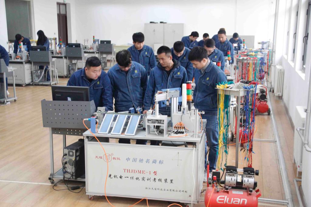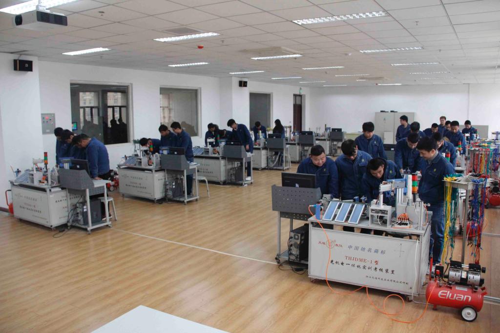 机电一体化综合实训室2011年11月建成,是中央财政支持项目,设备资产45万元。主要设备有THKDME-1型光机电一体化实训台10台,THJDAL-2型自动生产线拆装调试实训台2台。可同时容纳50名学生实训。主要针对机电一体化、数控技术、数控设备应用与维护等专业相关课程的实验和实训,目前处于国内领先。
